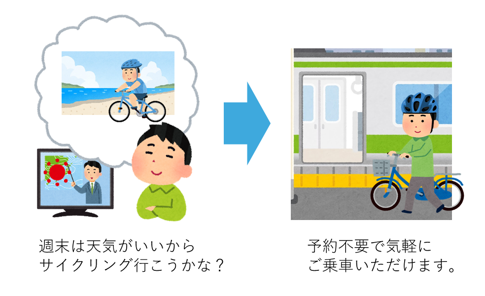今年度より、あいの風サイクルトレインはリニューアルを実施し、気軽に乗りやすい列車として生まれ変わります。
